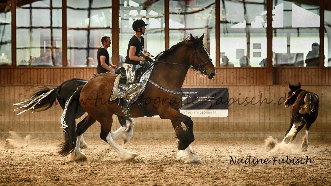 Beim Pas de Trois hätte der ausfall eines Pferde bedeutet das unsere ganze geprobte und einstudierte Choreographie nicht hätte laufen können. Daher ist Dörte als Ersatzpferd eingesprungen, aber die tolle Shire Dame hat einen tollen Job gemacht!