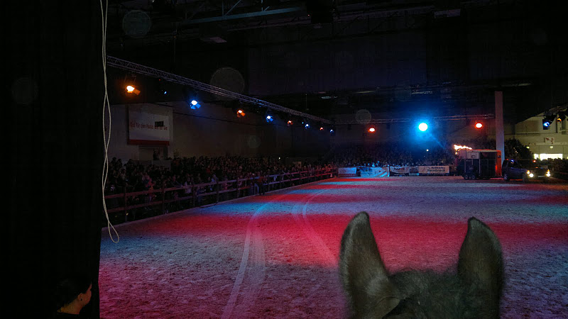 Risto und ich warten auf unseren Einsatz bei der Hund & Pferd 2011. Er kennt die Schaunummer schon fast auswendig, ist sehr aufmerksam und macht alles beinahe von alleine. Er kann es kaum erwarten bis er loslegen darf!